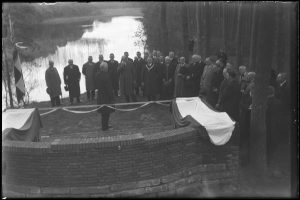 Als dank voor zijn inzet werd voor hem, nu 85 jaar geleden, een stenen bank geplaatst met uitzicht op het Van Esschenven (zie film onder). Het toekomstige nieuwe middelpunt van de gemeente Oisterwijk, zo blijkt uit onze berekening, valt aan de voeten van wie op deze bank plaats neemt. De Parel in ’t Groen zoals we Oisterwijk noemen, krijgt hiermee op deze bijzonder mooie locatie, een middelpunt met een symbolische natuur- en cultuurhistorische waarde.