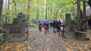 De wandeling werd verzorgd door Stichting Oisterwijk Verbeeld(t); de makers van de film Schaduwspel en de wandelapp ‘Oorlog in Oisterwijk’. Zij wisten als geen ander te vertellen over de bijzondere plekken in het buitengebied van Oisterwijk. En daar was duidelijk animo voor. Geïnteresseerden kwamen op het afgesproken moment opdagen, ondanks het treurige herfstweer. Vol interesse volgden zij de gids en luisterden aandachtig naar de uitleg.