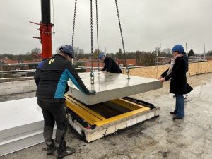 Veel belangstellenden hadden zich verzameld op de bouwplaats. Wethouder Eric Logister, Nicole Jansen, Manager Vastgoed van Leystromen en Simon Passier van Hoedemakers Bouw hielden een korte toespraak. Daarna hesen zij een imposante dakplaat van de liftschacht naar het hoogste punt van het appartementengebouw. Daarmee is het bereiken van het hoogste punt een feit.