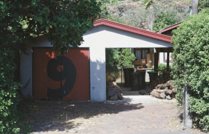 - combinatie van opslag en werkruimte, met rekken boven de auto en een werkbank aan de zijkant;