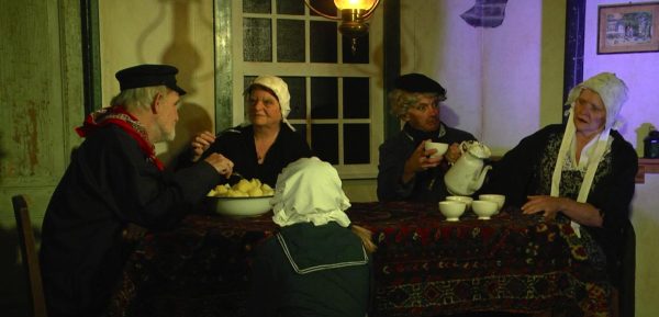 Ad Smarius, Jo Schilders en Mart Mols realiseerden een nostalgisch decor waarin een setting met acteurs zoals in het van Goghwerk ‘De Aardappeleters’ werd gecreëerd. Telkens opnieuw werd het korte spel uitgevoerd. Na een stemmig begin veranderde de sfeer in een warm kerstgebeuren.