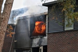 Vlammen slaan uit het gebouw (Foto: Toby de Kort).
