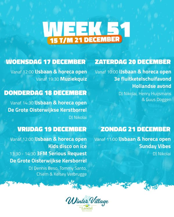 Vorig artikelOisterwijkse rugby Oysters werken hard!Volgend artikelProgramma Moergestel Kerstdorp 2025 met lichtjestocht Vorig artikelOisterwijkse rugby Oysters werken hard!Volgend artikelProgramma Moergestel Kerstdorp 2025 met lichtjestocht Genoeg te beleven op Oisterwijkse ijsbaan 17 december 2025 In het centrum op de kunstschaatsbaan worden allerlei activiteiten georganiseerd. Hieronder een overzicht van wat je komende dagen kan verwachten: Agenda Deel dit bericht: FacebookTwitterWhatsAppLinkedinEmail Gerelateerd - Meer >> Jeugd Oisterwijkse rugby Oysters werken hard! 17 december 2025 Centrum Centrum Oisterwijk straalde met WinterglO’w 16 december 2025 Oisterwijk Wil van Roessel wint PCO toernooi 15 december 2025 Haaren Kampioenen bij Nemelaer Haaren 15 december 2025 Laatste nieuws - Meer >> Haaren Lokaal blad De Nieuwsklok hier digitaal 17 december 2025 Centrum Radio en TV programma voor Haaren Heukelom Moergestel en Oisterwijk 17 december 2025 Kerst en Nieuw Programma Moergestel Kerstdorp 2025 met lichtjestocht 17 december 2025 Jeugd Oisterwijkse rugby Oysters werken hard! 17 december 2025