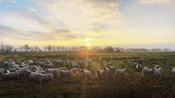 Schapen bij opkomende zon (Foto: Raymond van der Heijden).