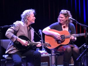 Ten derde male bij GUO dus niet in 2020, maar anno 2023 kwam het er alsnog van. In Cultuurcentrum Tiliander, met benodigde theatertechniek, ruime zaal met zittribune, vlakke-vloerpodium, kleedruimtes backstage, door GUO-vrijwilligersteam onder leiding van chef Dave bereide, gezonde, verse catering, want ja: het zijn wel Dayna, Robert en hun personal tourmanager Frits. En nee, dat zal in nietig Lodewijkskerkje natuurlijk niet meer kunnen. Fijne akoestiek, dat wel, kerkmonumentje ook, maar met 100 stoelen volle bak, reservebankje bij het kerkorgel op het koor, knutselpodiumpje onder kansel, houtje-touwtje licht en geluid van deels GUO zelf en van deels GUO-vrijwilliger Jan, zelfde chef catering, nagenoeg zelfde vrijwilligersteam met de beste bedoelingen en passie voor de muziek zelf, dat dan weer wel.