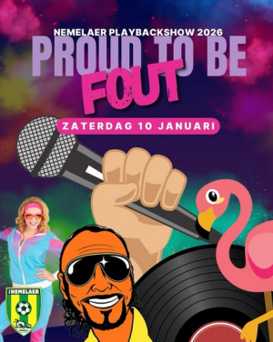 Ook dit jaar gaan de leden van Nemelaer Haaren zich weer wagen aan een plaubackhsow, met dit jaar het thema “proud to be FOUT”. Tijd om schaamteloos los te gaan, over-the-top acts en je foutste outfits aan te trekken. Zaterdag 10 januari gaan de deuren om 19:30 uur openen en de start is om 20:00 uur. Ook dit jaar geldt: ieder team doet mee indien je niet afmeldt. Van alle senioren teams tot JO19 & MO20. ‘We zien iedereen graag op hun meest creatieve manier hun act uitvoeren.’ In de middag wordt de kantine al omgetoverd met de foutste hits door de junioren, ook hier is iedereen welkom.