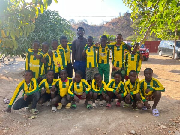 Een van de teams in Malawi met Haarense shirts (Bron: Stichting Oneheartmalawi)