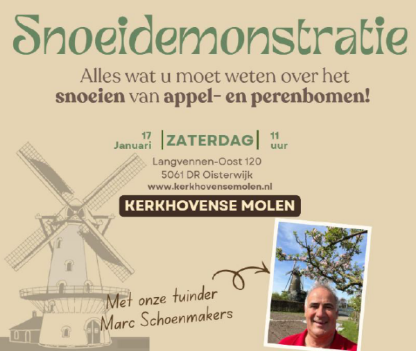Vorig artikelJaaroverzicht deel 4: Videobeelden van LOVOVolgend artikelSchildergroep De Krekul Oisterwijk exposeert in De Verdieping Moergestel Vorig artikelJaaroverzicht deel 4: Videobeelden van LOVOVolgend artikelSchildergroep De Krekul Oisterwijk exposeert in De Verdieping Moergestel Snoeidemonstratie bij de Oisterwijkse molen 5 januari 2026 Op 17 januari geeft Marc Schoenmakers een snoeidemonstratie bij de Kerkhovense Molen in Oisterwijk. Agenda Deel dit bericht: FacebookTwitterWhatsAppLinkedinEmail Gerelateerd - Meer >> Oisterwijk Er ligt weer een beetje sneeuw in Oisterwijk 2 januari 2026 Alles De perfecte zwerfkei vinden: waar moet je op letten? * 23 december 2025 Jeugd Met de klas op bezoek bij de Kerkhovense molen in Oisterwijk 1 december 2025 Alles Leuke activiteiten voor in je tuin * 22 november 2025 Laatste nieuws - Meer >> Gemeente Nieuwjaarsbijeenkomst Gemeente Oisterwijk vanwege gladheid verzet 6 januari 2026 Gemeente Meer dan de helft vrouwen bij Oisterwijkse lijsttrekkers tijdens Gemeenteraadsverkiezingen 2026 6 januari 2026 Oisterwijk Wijklunch in de Pannenschuur 6 januari 2026 Jeugd Wat rugby Oysters doen als er sneeuw ligt? 6 januari 2026