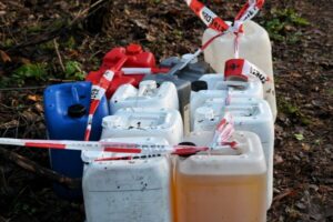 Een voorbijganger ontdekte de jerrycans en waarschuwde de autoriteiten. Politie en diverse boa’s kwamen snel ter plaatse om de situatie te beoordelen. Een deel van de vaten was gevuld met een nog ongeïdentificeerde vloeistof.