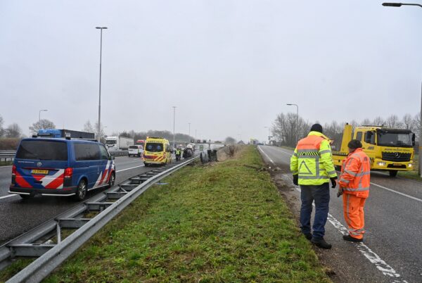 Dinsdagmorgen omstreeks 10:15 uur heeft een automobilist de macht over het stuur verloren bij de afrit op de A58 bij Moergestel.