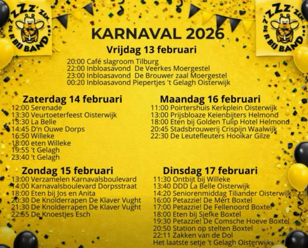 Het Döllekesgatse dweilorkest Zzzzzenderbijband organiseert op zaterdagmiddag en -avond 14 februari het Veurtoeterfeest.