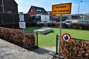 Na dit alles heeft de gemeente vrijdag 20 maart betonblokken en een verbodsbord geplaatst. De gemeente doet er alles aan om balspelen tegen te gaan. Dit in opdracht van de rechter, in afwachting van een definitief besluit over wat er met het veldje gaat gebeuren.