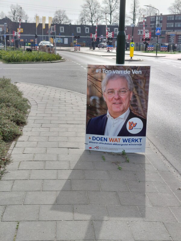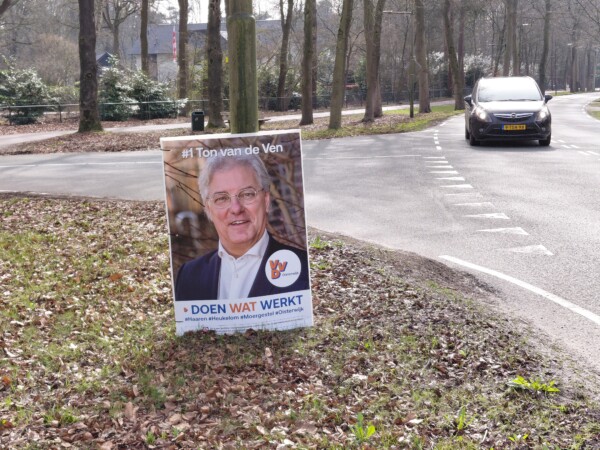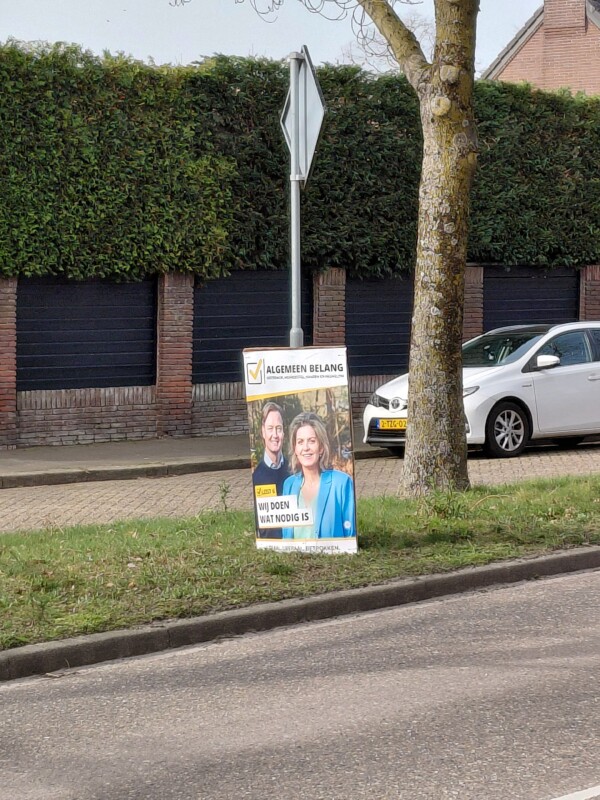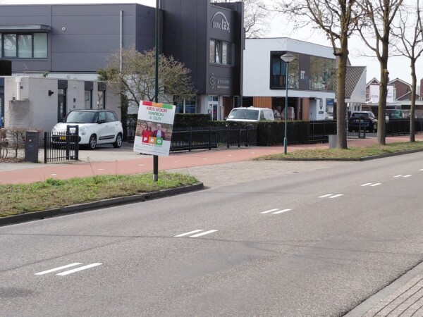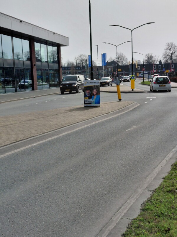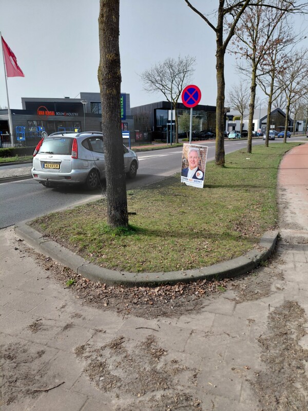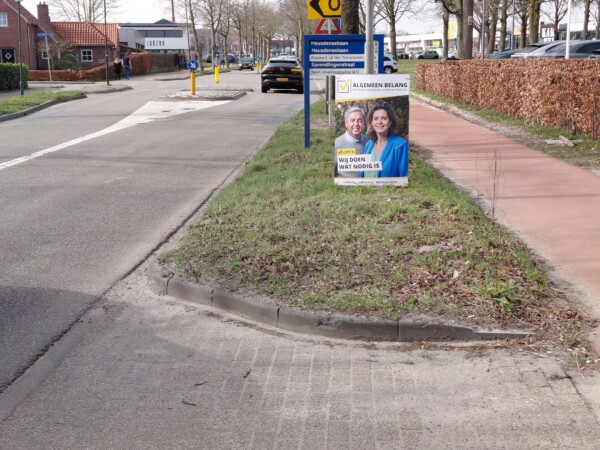 Hoewel de partijen hiermee bij ons gratis reclame krijgen, is het beeld er niet beter op geworden. Her en der is het een rommeltje van diverse kriskras geplaatste borden. Erger is het wanneer borden het zicht wegnemen voor auto’s of fietsers, en er daardoor ongelukken gebeuren. Borden bij zijstraten, uitritten, vlak voor een zebrapad… …de regels zijn door de gemeente niet voor niets bedacht!