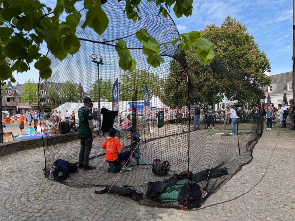 In Moergestel werd onder andere genoten van een flinke slag tegen een bal, bij de slagkooi van ROEF!. Zij hadden een mobiele slagkooi en dat was een groot succes! (Foto: ROEF!)
