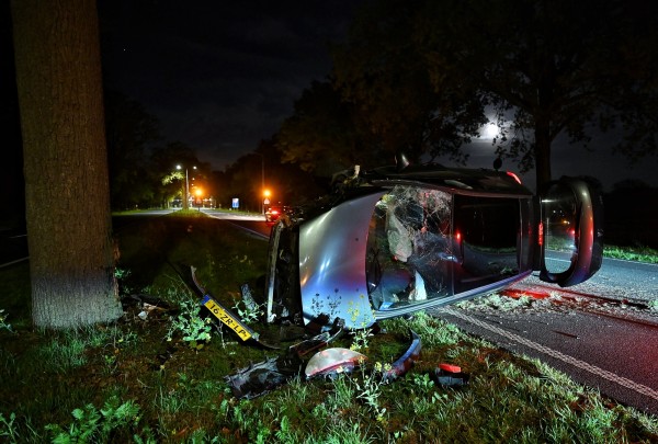 Terwijl agenten bij de auto staan komt de volgende melding binnen, een aantal kilometer verder op is een auto tegen een boom gereden en op zijn kant terecht gekomen. De hulpdiensten spoede zich richting de volgende locatie. Hier bleek een jongeman koningsnacht gevierd te hebben en onder invloed tegen een boom te zijn gereden. Hij kwam vanaf richting Oisterwijk en ging de middenberm in waarna hij frontaal op een boom botste. De jonge man is ter plaatse nagekeken door een ambulance en daarna aangehouden voor een alcoholtest op het bureau. Op straat blies hij al een veel te hoog promillage. Het wrak dat op zijn kant lag op de N65 is door een berger afgevoerd.